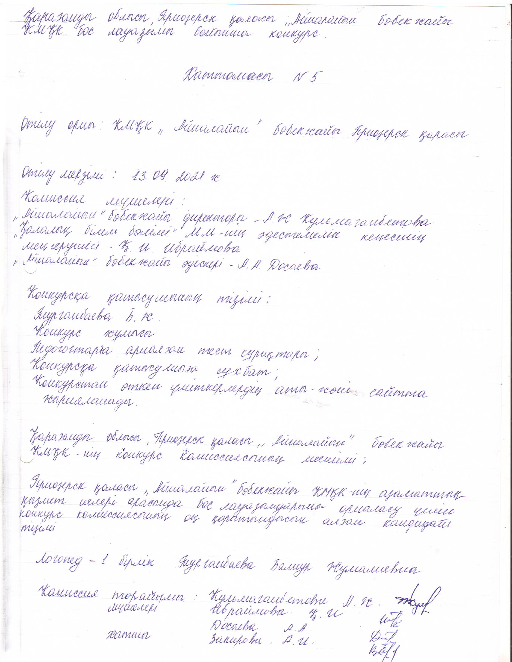 2021 жылдың 13 қыркүйек күні, сағат 15:00-де КМҚК «Айналайын» бөбекжайында бос лауазымдық орындарға конкурстың өтетіндігі хабарланады!