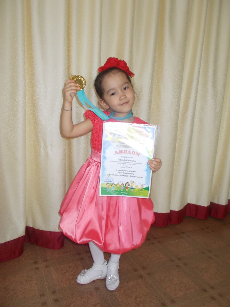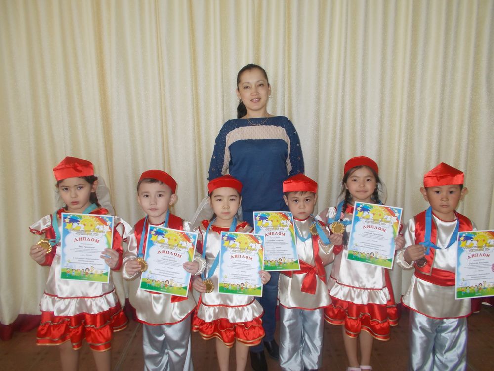 «Айналайын» бөбекжай- балабақшасының бүлдіршіндері тағы да жеңіспен оралды. Балабақша тәрбиесіне қоса біздің бүлдіршіндер өнерді де қатар алып жүріп үлкен сахналарды бағындырып, үлкен жетістіктерге жетуде. Дәстүрге айналып үлгерген жылда наурыздың 16 жұлдызында Алматы қаласында өтетін «Первые шаги» атты Республикалық конкурсқа ағымдағы жылы, қатысып бүлдіршіндеріміз жүлделі орындарға ие болды. Балабақшамыздың музыка жетекшісі Сүлейменов Марс ағайдың, бала бойындағы өнерін ән айтуға деген талаптарын әрі қарай дамытып еңбектену арқасында төрт бірдей бүлдіршініміз вокал номинациясы бойынша өнерлерін көрсетті. Тәп- тәтті сыңғырлаған дауыстарымен көрермендерді тамсандырған бүлдіршіндерімізді атап айтсақ ең кішкентай 4 жастағы әнші қызымыз Тұрдыбай Назерке 1 орынды, Раджапбай Нұрлан 2 орынды, Таткен Толғанай 2 орынды, Смайл Әлім 3 орынды иеленді. Сонымен қатар биші бүлдіршіндеріміз де құр қайтқан жоқ. Балабақша хореографы Перизат Маратқызының жетекшілігімен «Қарлығаш» тобының 12 бүлдіршіні «Татар» биін билеп топты жарып 1 орынға ие болды. Осылай кіп- кішкентай болсада балабақшамыздың, қаламыздың атын шығарып қайтқан бүлдіршіндерімізге алғыс айтамыз.