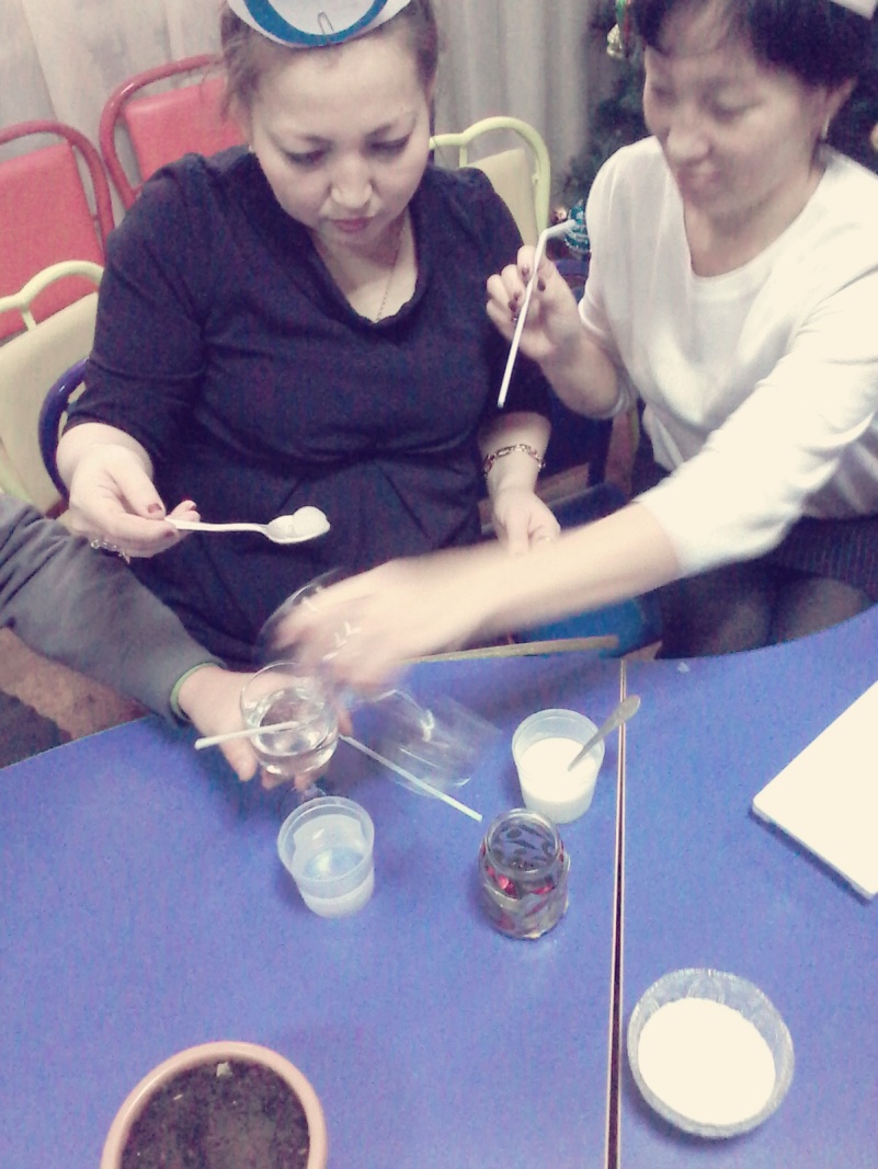 Шеберлік сынып барысы педагогтардың ортаға шығып, шаттық шеңберін құрып, үш тілде амандасудан басталды. Содан соң зертхана жетекшісі Ж. Күлмағамбетова келген қонақтарды зертханаға шақырды.Онда педагогтармен зерттеу, бақылау жұмыстарын өткізді.Алдымен жұмбақ шешкізіп, соңынан мақал-мәтел, тиым сөз айтқызып жарыстырды.Одан кейін зерттеу жұмыстарын жүргізді.7 тәжірибелік іс көрсетілді. Бұдан педагогтарымыз судың мөлдір екенін, судың дәмсіз,түссіз,иіссіз,сіңгіш екеніне көз жеткізді.