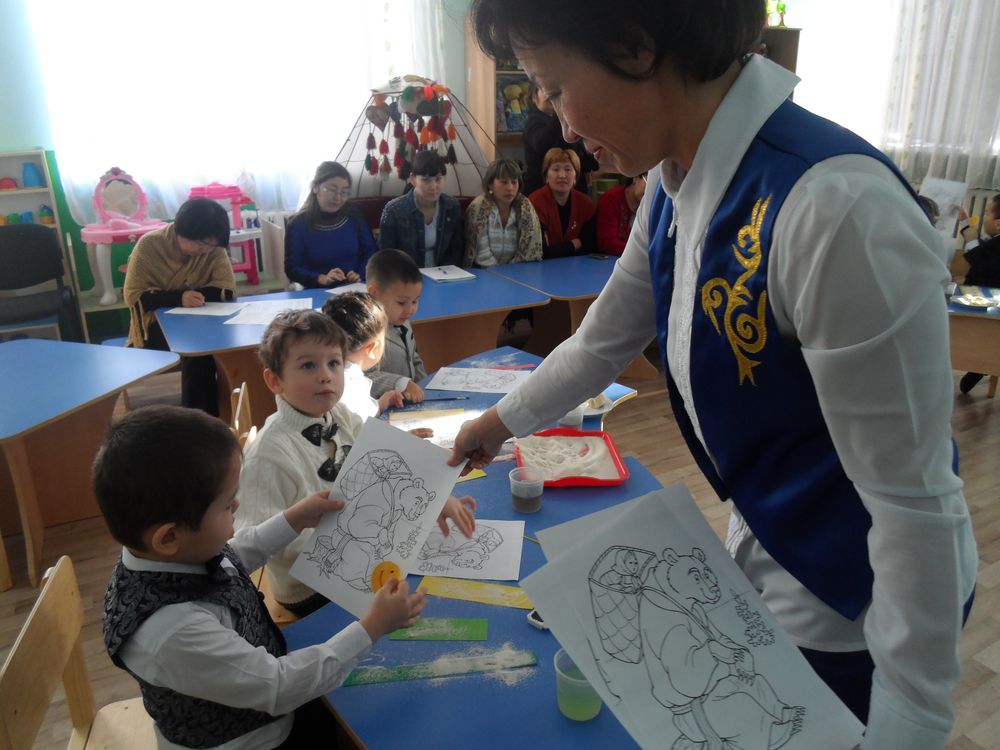 «Айналайын» балабақшасында қаңтар айының 28 жұлдызында «ортаңғы» топ балаларымен ашық ұйымдастырылған оқу іс-әрекеті өтті. Ұйымдастырылған оқу іс-әрекетінің тақырыбы «Маша мен аю» ертегісі. Балалар ертегіні тыңдай отырып, ертегі әлеміне сиқырлы жаңбыр арқылы саяхатқа шықты. Ұйымдастырылған оқу іс-әрекетінде ертегімен таныстырып отырып, балаларға әр түрлі дидактикалық тапсырмалар берілді.