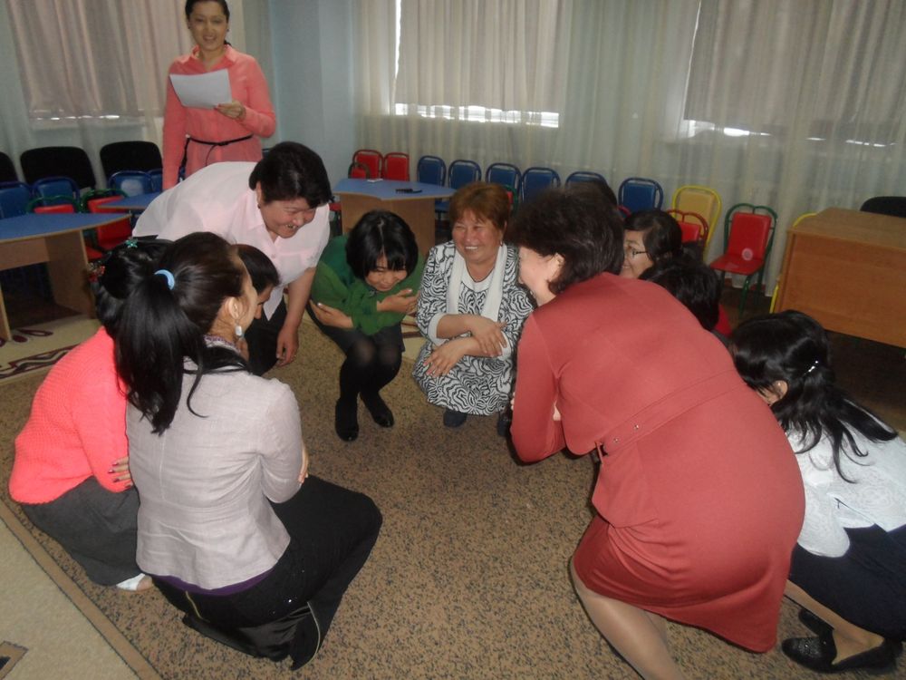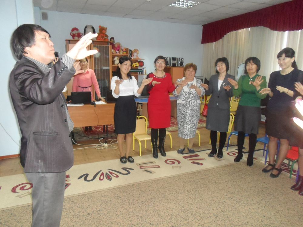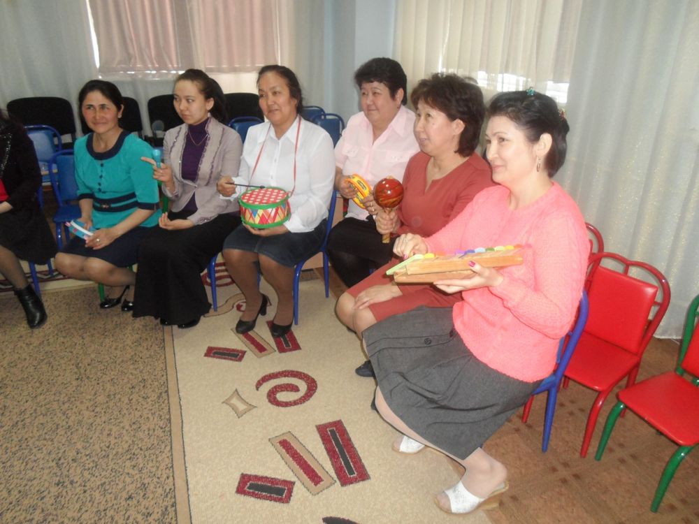 Шеберлік сынып барысы зертхана жетекшісі хореограф, педагогтарды ортаға шақырып, шеңбер құрды. Шеңбер бойымен жүріп педагогтар әр-түрлі қимыл қозғалыстарды қайталап, музыка ырғағына сай және кейіпкердің мінезіне сай етіп орындап шықты. Мұнда педагогтарымыз кейіпкердің ролін сомдай отырып, ондағы қимыл-қозғалыстардың есте тез сақталып қалатынына әрі қызықты өтетініне көз жеткізді. Содан соң зертхана мүшесі музыка жетекшісі педагогтармен әрі қарай музыканы қабылдауды және сол музыка әуеніне қосыла білуді үйретті. Барлық педагогтарға ұрмалы аспаптан беріп музыка әуенін қосып, шағын оркестр ұйымдастырды. Мұнда педагогтар ұрмалы дыбысты есту арқылы ырғаққа, әуенге қосылудың өзіндік қыр сырларын үйренді. Шеберлік сыныбы ойдағыдай сәтті өтті десе де болады.
