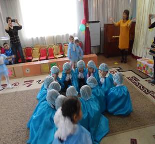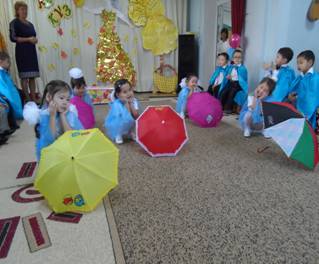 Тәрбиеші балаларды шеңбер бойына тұргызады. Қайырлы күн, балалар! Қайырлы күн, апайлар! Біз ерекше баламыз, Айтқан тілді аламыз. Достарды көргенде Қуана қарсы аламыз.