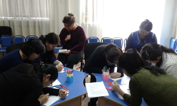 «Айналайын» бөбекжайының жас мамандарымен «Көтеріңкі көңіл-күй» тақырыбында тренинг өтті. Тренинг мақсаты: жас мамандарға көмек көрсету және ұжымда жағымды психологиялық ахуал қалыптастыру еді. Сонымен қатар келесі міндеттер алдыға қойылды, ол: бір-біріне деген сенімділік, психологиялық қолдау көрсету, шығармашылық бағыт беру. Тренинг жоспары бойынша педагогтарға 6 ойын-жаттығулар ұсынылды, олар: «Маған -саған», «Есте қалған қызықты оқиға», «Жасырын хат», «10 бөлмелі пәтер», «Әртістер», «Біз көңілдіміз!». Тренинг барысында педагогтар өз ойларын ортаға салды. Тренинг соңында «Ашығын айтсам» рефлексиясы өтті. Жас мамандарға күнделікті жұмыстағы әртүрлі жағдайларда өзін қалай ұстау керегі, стресстен қалай оңай құтылу жолдары, жұмыс барысында ойларын ашық жеткізуге, түсінбеген жағдайларда тәжірибесі бар мамандардан көмек сұрауға, кикілжін мәселелерді біріге отырып шешу туралы психологиялық кеңестер берілді.