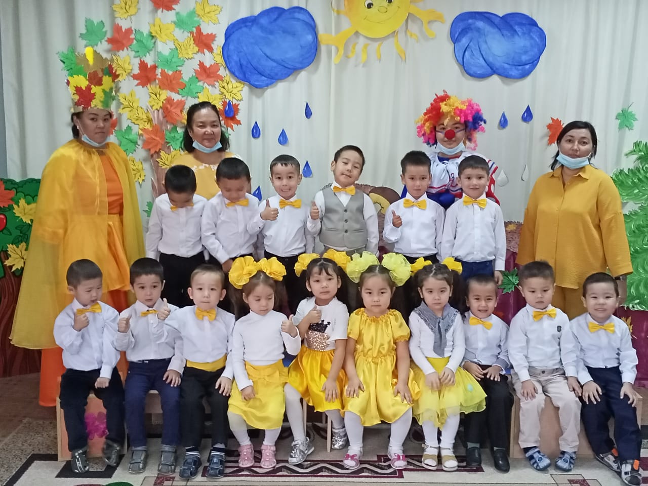 Мақсаты: Күз мезгілінің ерекшеліктерін ұғындыру. Мерекелік көңіл – күй орнату. Балаларды ән салуға, би билеуге, бейімділіктерін арттыру. Шығармашылық ой - қиялдарының дамуына ықпал ету. Табиғатқа деген сүйіспеншіліктерін арттыру.