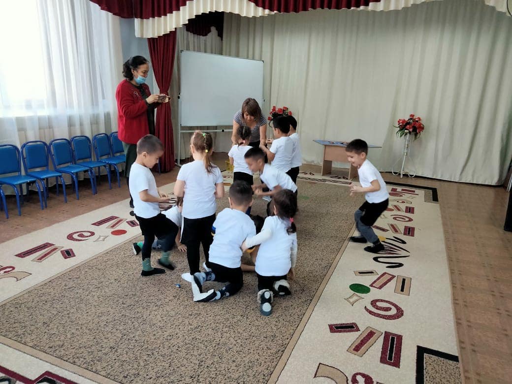 --Математика сауаттылық аптасы аясында, "Айналайын" бөбекжайынын- дене тəрбиесі нұсқаушысы Айтпаева Жанар, спорттық "Қызықты математика" ойын- сауық эстафеталық жарысын өткізді. Эстафета жарысына "Балдырған" тобының бүлдіршіндері қатысты. Эстафета ойыны 4-кезеңнен тұрды. Балалар ойынға белсене қатысты. Іс-шараның мақсаты: Балаларды ойын арқылы ойлау қабілетін дамыту. Ұқыптылыққа, зейінділікке, шапшаңдыққа тəрбиелеу.