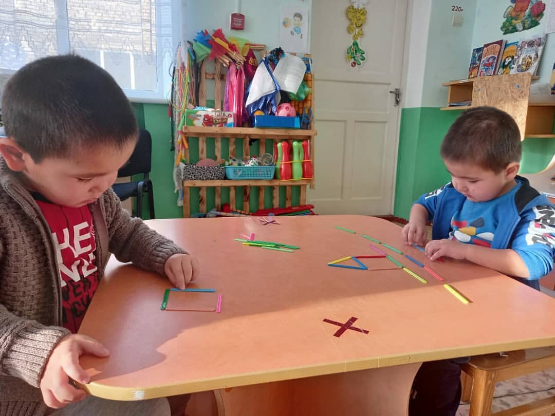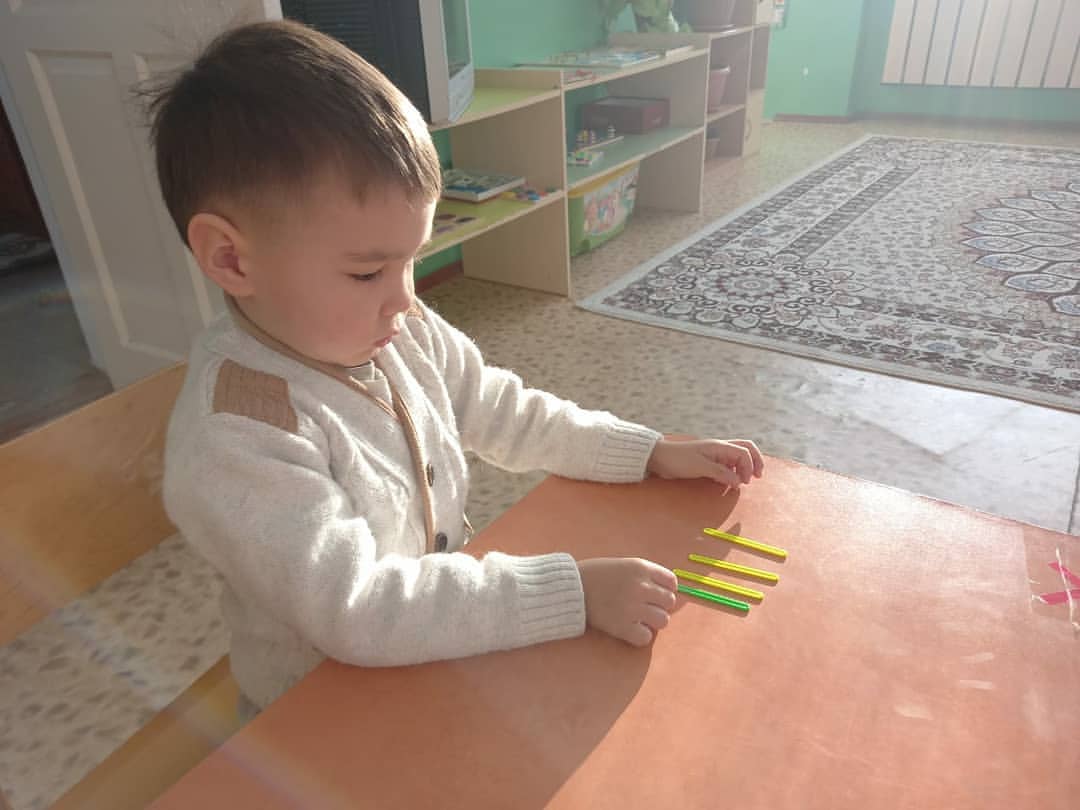 --Қаңтар айының 28 жұлдызында "Айналайын"бөбекжайының "Жұлдыз"ортаңғы топ тәрбиеленушілері "Қызықты математикалық сауаттылық" апталығы аясында "Санау таяқшалары"дидактикалық ойынын ойнады. Мақсаты: Таяқшалардың көмегімен балалар әртүрлі геометриялық пішіндерді, үйді құрастыра білді.