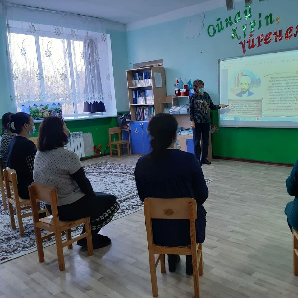 2020 жылдың 17 қарашасында "Айналайын" бөбекжайында "Болашаққа бағдар: рухани жаңғыру" бағдарламасы аясында шығыстың ғұлама ойшылы, математик, астролог, музыка теоретигі, Аристотельден кейінгі екінші ұстаз атанған Әбу насыр әл-Фараби туралы "Әбу насыр әл-Фараби - шығыстың ұстазы" атты семинар өтті. Есімі дүние жүзіне мәлім болып, ғылыми және мәдени мұраларды ғасырлар бойы ардақталып, ұрпақтан-ұрпаққа жетіп келе жатқан тарих перзенттерінің бірі және бірегейі әл-Фарабидің бай рухани мұрасын насихаттауды мақсат еткен шараға бөбекжай ұжымы қатысты. Семинар барысында ғұлама ойыншылдың өмірі мен оның еңбектерінің құндылығы, маңыздылығы қарастырылды. Семинарға қатысушылар әл-Фараби туралы презентацияны тамашалап баяндаманы тыңдады. Іс-шарада ғұлама ойшылдың өмірі мен ғылымға әкелген үлкен үлесі тұралы кеңінен сөз болды.