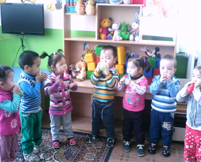 «Балапан» тобында оқу іс-әрекетінен тыс қимыл қозғалыс арқылы балалардың дене бітімінің дұрыс дамуына жағдай жасау мақсатында «Кедергілерден аттап өту» атты сауықтыру ойыны өткізілді. Ойынға 12 бала қатысты. Балалар жіңішке тақтайдың үстімен тепе-теңдікті сақтап жүріп өтіп, қолындағы допты домалату арқылы нысанаға тигізу әрекетін қызыға жасады. Ойын соңында балалардың тыныс жолдарын ашу мақсатында ойнатылған «Шар үрлеу» ойыны балаларға базарлық болды.
