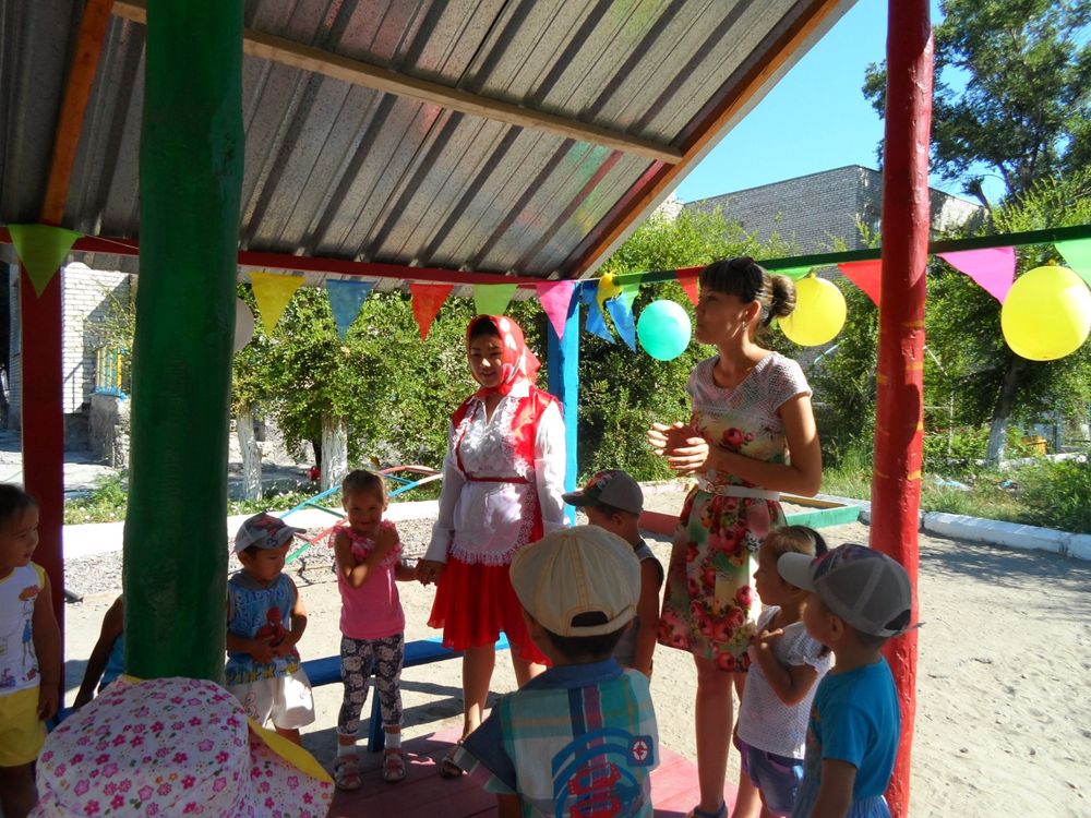 Іс – шараға ертегілер елінен Маша қызбен Аю кейіпкерлері қонаққа келді. Олар балалармен түрлі қимылды ойындар ойнады. Ойын – баланың білім-білік дағдысын қалыптастыратын тәрбие құралы.