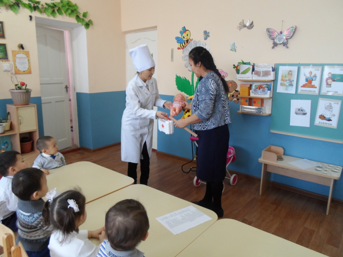 «Айналайын» бөбекжайында 2016 жылдың 17-ші ақпанында «Балапан» 1 кіші тобында «Мамандық. Дәрігер » тақырыбында ашық ұйымдастырылған оқу іс әрекеті өтті. Балаларға қонаққа келген «Қуыршақ Айшаның » ыстығы көтеріліп ауырап қалды. Оған «Жедел жәрдем» көлігімен «Дәрігер» келіп қуыршақты емдеп дәрі беріп кетті. Балаларға ұйымдастырылған оқу іс әрекеті өте қызықты өтті. Балалар ұйымдастырылған оқу іс әрекетіне белсене қатысып, сұрақтарға жауап беріп отырды. Тәрбиеленушілердің дәрігер мамандығы туралы алғашқы түсініктері қалыптасты.
