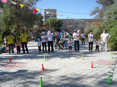 Отбасы күнін атап өту мақсатында 10-қыркүйек күні «Отбасы- бақытты планета» атты отбасылық эстафеталық сайыс өтті. Сайысқа «Айналайын» бөбекжайынан Сайлыбай отбасы, «Балақай» бөбекжайынан Юсуповтар отбасы, «Балбөбек» бөбекжайынан Зайнуллаевтар отбасы, «Еркетай» шағын орталығынан Макишовтар отбасылары қатысты. Сайыскерлер өз ұрандарымен таныстырып өткеннен кейін жарыстың бірінші кезеңі жалғасты. «Тасымақ», «Қар жасап, жинау», «Тұсау кесу», «Кім жылдам?», «Музыкалық сәлемдеме» секілді жарыстардан бәсекеге түсті. Сайысты көрермендер қызыға тамашалады.