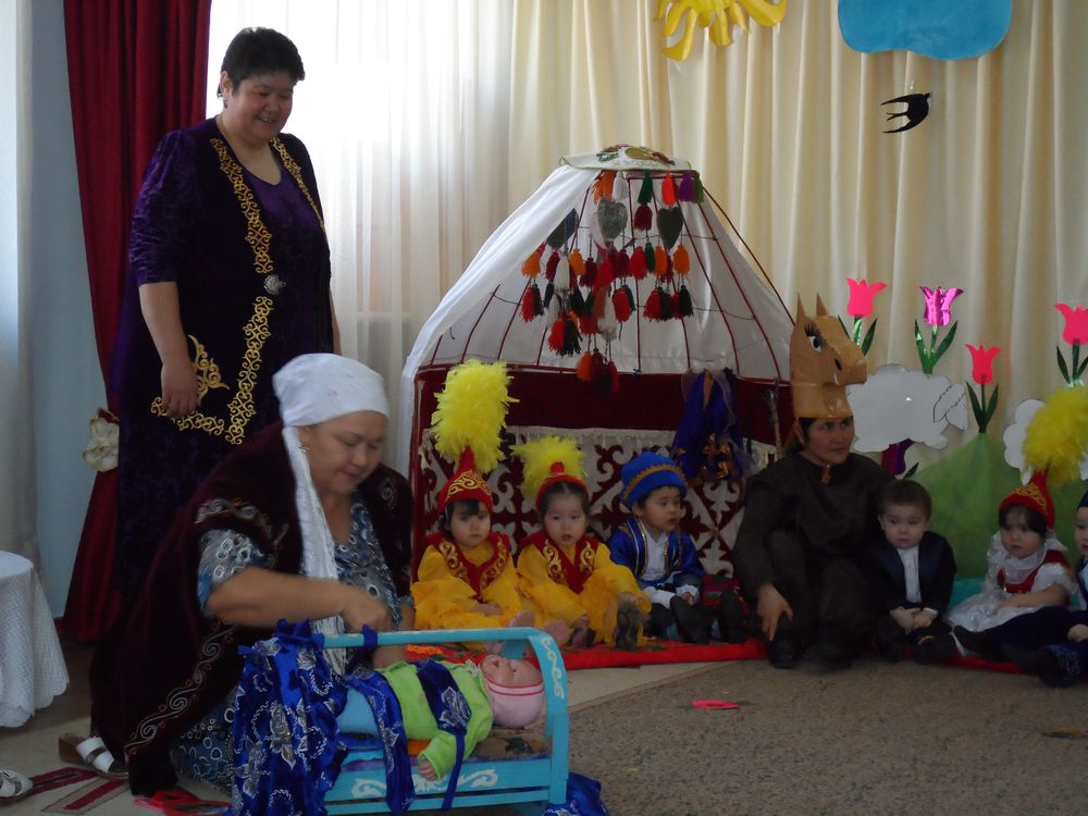 Продолжением праздника бабушки показали национальный обычай «Бесікке салу» (Младенца впервые укладывают в колыбельную). На праздник Наурыз пришли гости из сказок: лошадь- хозяйка наступаюшего года и батыр Ертөстік, которые забавляли детей национальными играми «Ханталапай», «Орамал алу». Дедушка Қыдыр ата дал благословение и напутствие детям.