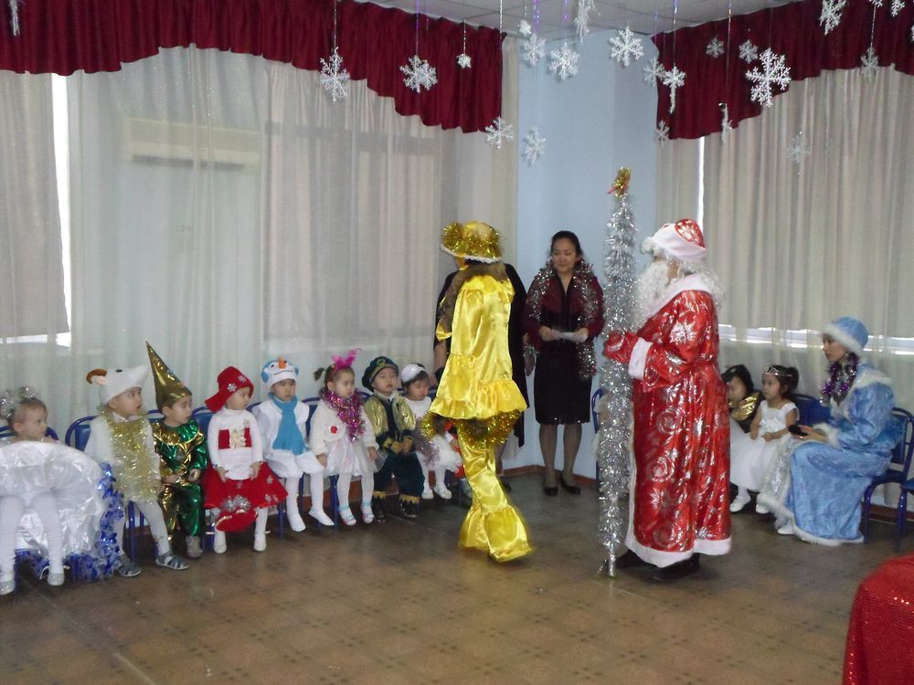 В детском саду «Айналайын» в группе «Балапан» отметили Новогодний утренник на тему: «Жаңа жылым қош келдің!». Родители и дети были в восторге, увидев Деда мороза и Снегурочку, а также красиво наряженную елку. Наши самые маленькие детишки с удовольствием и с радостью принимали участие в играх. Дети Деду морозу рассказывали стихи, пели песни и танцевали и дедушка мороз дарил детишкам подарки. К нам на праздник пришли гости Баба-яга,зайчишка,лиса,лошадь и овца.