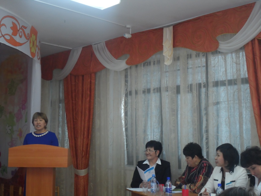 показали «мастер класс» на тему «Мектепке дейінгі мекеменің және отбасының рухани-адамгершілік тұрғыда оқыту мен тәрбиелеу үдерісіндегі өзара әрекеттестігі». Целью «мастер класса» является нетрадиционная форма передачи коллективного опыта и демонстрация новых идей педагогов. Для более точного осознания сути темы, занятие прошло в виде тренинга, где педагогам была предоставлена возможность высказать свою точку зрения.