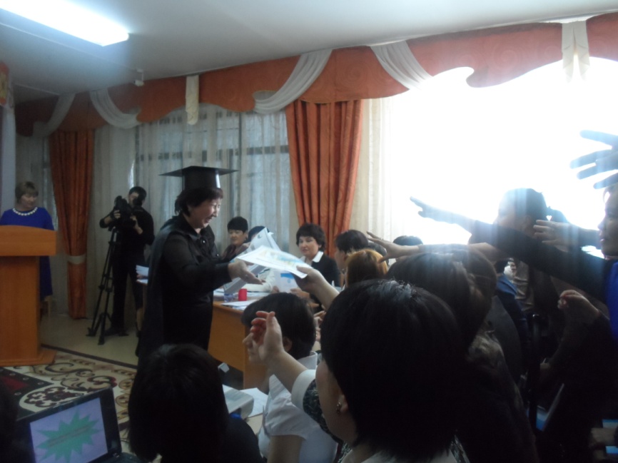 В завершений дискусии была презентация книги: «Адамгершілік аккадемиясы». «Мастер класс» педагогов ясли-сада «Айналайын» прошла на «ура». Воспитатели вернулись с сертификатами по теме «Самопознание-педагогика нового времени».