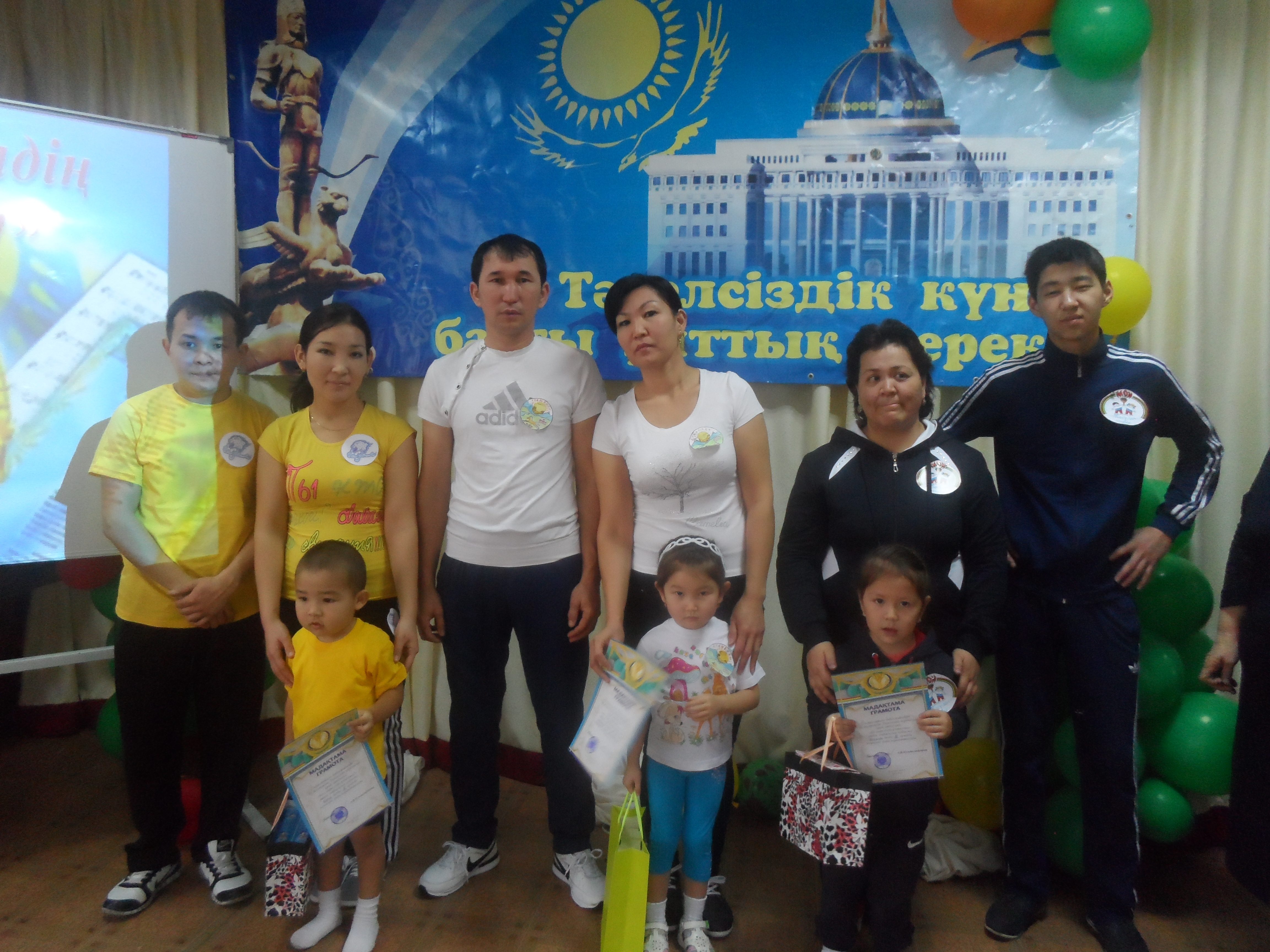 15 декабря был проведён семейный конкрус «Біз- азат елдің ұланымыз!», который был посвящён ко дню Независимости РК. В конкурсе участвовали семейные команды старших и средних груп. Участники познакомили зрителей с названием и девизом команды. Конкурс состоял из 5 туров . Все участники были активны. Также остались довольны и болельщики. Цель эстафеты: привить в семье любовь к спорту, развивать здоровый образ жизни и воспитать здоровое поколение. Проследив интересную игру участников, жюри объявило победителей. Первое место заняла семья Анафияевых из команды «Атамекен», семья Жолдасбековы из команды «Барыс» заняла второе место. А семья Панабековых из команды «Жасулан» было присуждено III место. Каждая семья была награждена похвальным листом, и ценными подарками. Участники конкруса «Біз- азат елдің ұланымыз!» поблагодарили организаторов за проведение такого мероприятия.