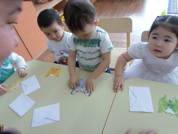 В детском саду «Айналайын» в группе «Балапан» провели открытое занятие на тему: «Ұшатын көбелектер». Воспитательница рассказала детям, про бабочек, цель занятия дать детям представление о бабочках, о том, что у нее есть: крылья и они разного цвета. На занятие дети собирали целостную картинку бабочки из отдельных частей, тем самым развивая у детей любознательность, воображение, мышление, память,воспитывая любовь к живой природе.