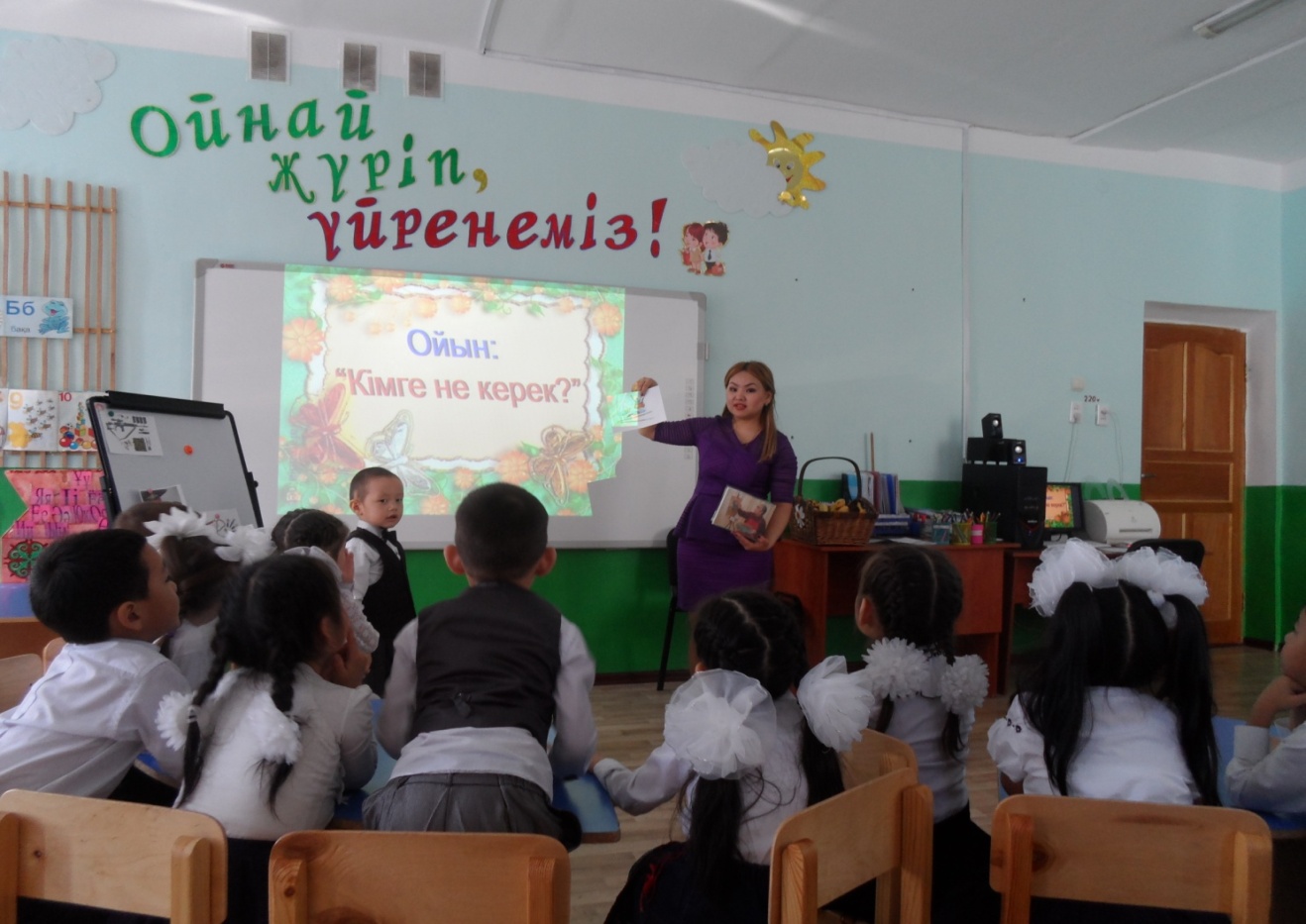 В детском саду «Айналайын» воспитательница старшей группы «Қарлығаш» Кисекеева К.Т провела откыртое занятие на тему «Мамандықтың бәрі жақсы». В начале дети все встали в круг,и пожелали друг-другу хорошие пожелания.С целью открытия темы урока, дети отгадывали загадки, которые скрывались в конвертах,и рисовали их ответы.К детям пришла повар,и раздала всем витамины.Она с детьми сиграла в очень интересную игру. В миг прибодрения дети станцевали веселый танец. В конце занятия выучивали поговорки про труд, и закончили с веселым настроением.