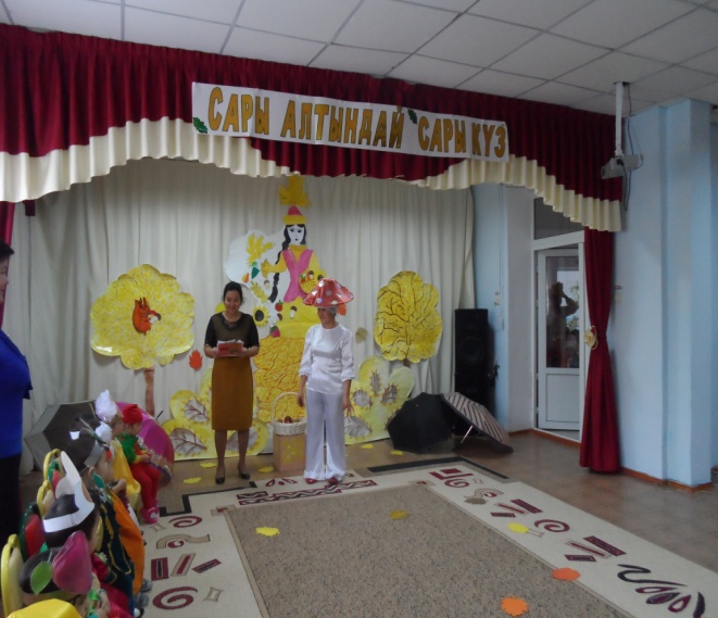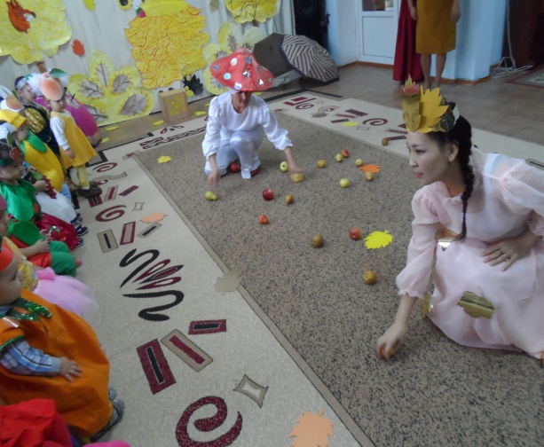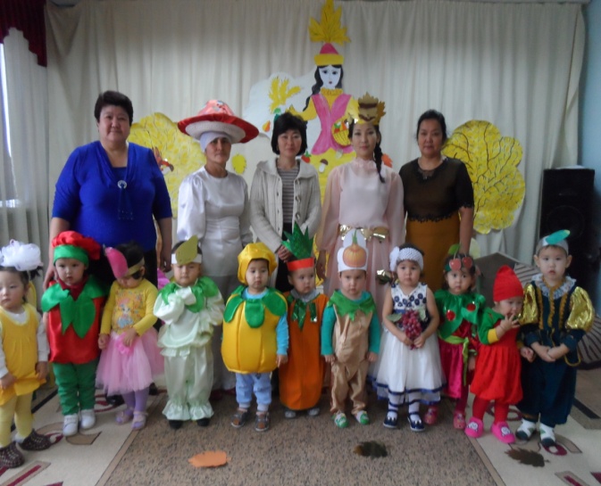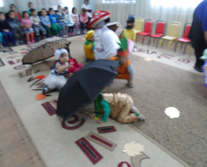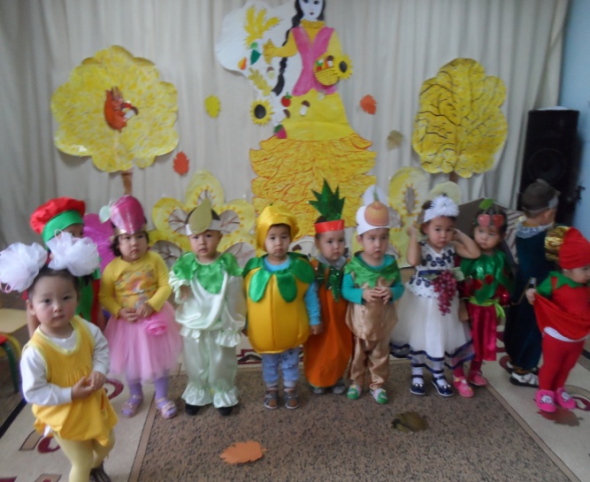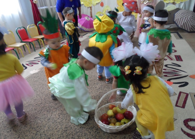 В детском саду «Айналайын» в группе «Балапан» у самых маленьких воспитаников сада прошел утренник на тему «Жемістер мен көкеністер». Детишек завели в зал, украшенный осенними листьями, они пели песню и рассказывали стишки про золотую осень. Дети играли в игру «дождь и зонтик», детишкам было весело, детям игра очень понравилась.