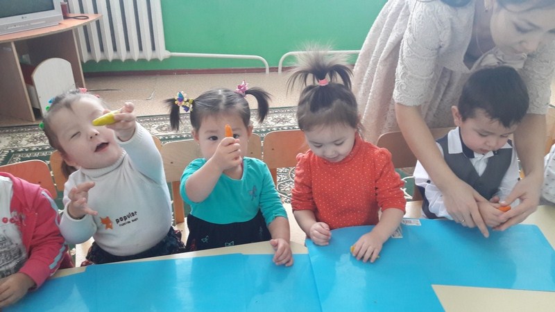 Педагог рассказывала о особенностях зимы и о интересных играх. На уроке был персонаж Снеговик потерявший нос. И дети лепили нос из пластилина для снеговика. Снеговик был очень рад, а детям было очень весело.