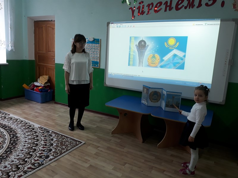 В детском саду «Айналайын» 30 ноября в старшей группе «Карлыгаш» был проведен открытый урок на тему «Тәуелсіз елдің көшбасшысы». Урок начался с государственного гимна Республики Казахстан. Дети прочитали стихотворения, посвященные главе государства. Станцевали и спели песни. Посмотрели документальный фильм про Президента Республики Казахстан и достопримечательности нашей столицы.